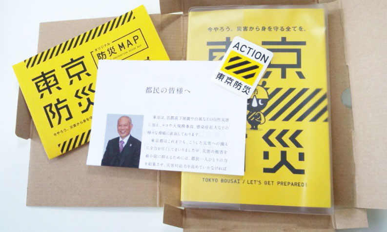 そのほか、防災マップ、シール、そして舛添知事の挨拶などが印刷された紙が封入されている。