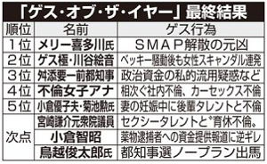 Source: 【ゲス・オブ・ザ・イヤー】1位はSMAPを空中分解させたメリー氏! – 東スポWeb