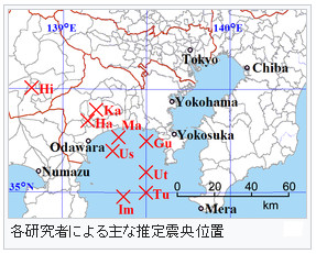 関東大震災のときは、単純な震度計しかなく、当然のことながら詳細なデータも取れなかったため、震源・震央がどこかさえはっきりしていない。