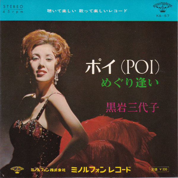 (左)シングル『ポイ(POI)』c/w『めぐり逢い』黒岩三代子 1966年7月11日臨発 ミノルフォン