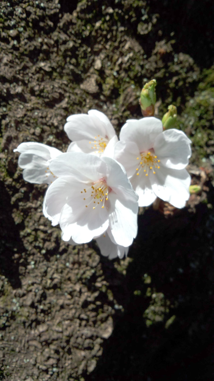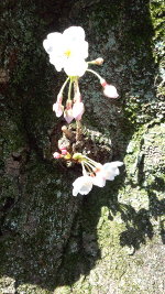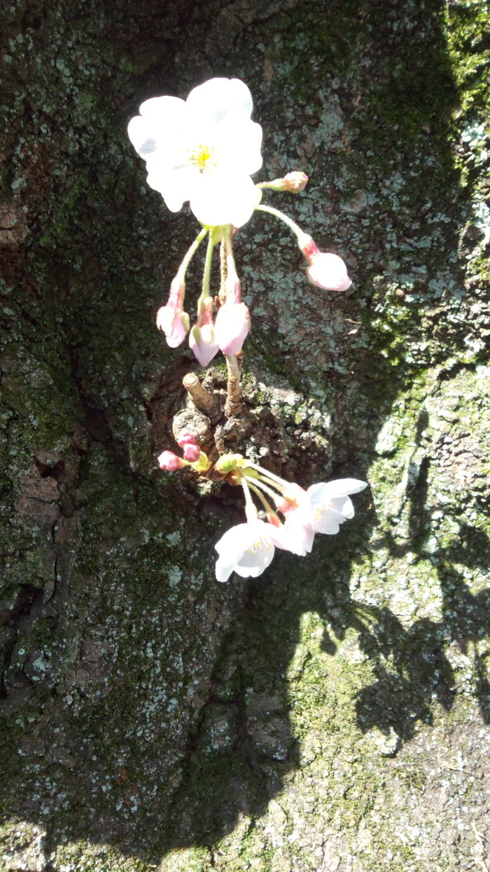 桜は枝だけでなく、幹にも芽が出て花をつける。