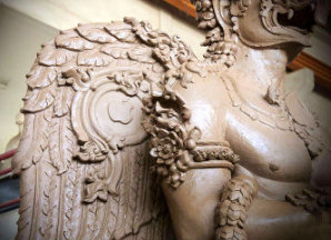 彫像は高さ約2メートル。ヒンズー教の神聖な巨鳥「ガルーダ」をかたどったもので、翼などにアップルやグーグル、フェイスブックのロゴが彫られていた。職人の1人が、自らのフェイスブックに写真を載せて発覚した。https://mainichi.jp/articles/20170504/k00/00m/030/074000c