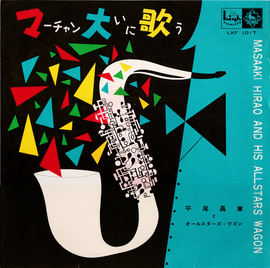 (左)10インチLP『マーチャン大いに歌う』平尾昌章とオールスターズ・ワゴン キング 1959年3月発売。