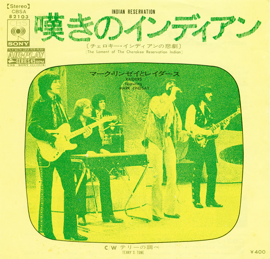 (上)シングル『嘆きのインディアン(チェロキー・インディアンの悲劇)』c/w『テリーの調べ』マーク・リンゼイとレイダース CBS・ソニー