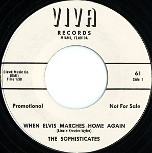 1959年6月、フロリダの Viva Records からリリースされたザ・ソフィスティケイツ(The Sophisticates)というグループの『When Elvis Marches Home Again』(右)。