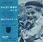 (左上)日本発売シングル盤 「わんぱく戦争」サウンドトラックより 『わんぱく戦争のマーチ』ホセ・ベルマン楽団 c/w 『森のプロムナード』ルネ・ピェール・シュトゥ楽団 ビクター