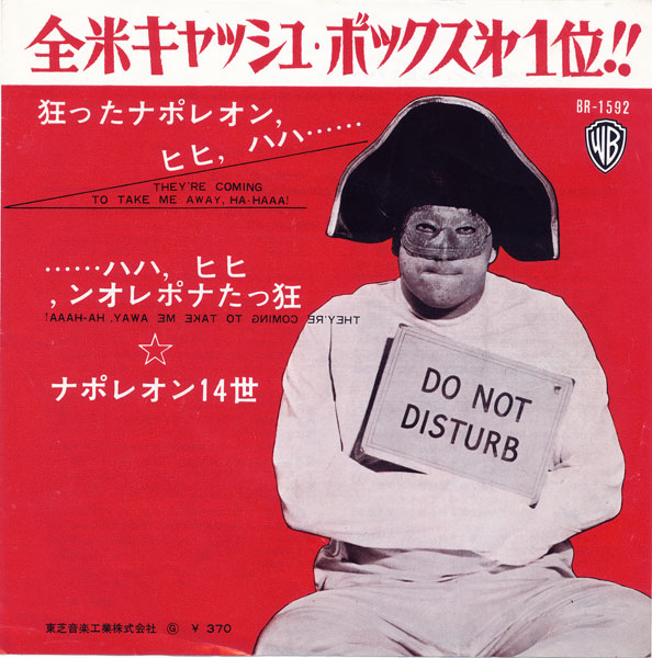 (左)シングル『狂ったナポレオン,ヒヒ,ハハ……』c/w『……ハハ,ヒヒ,ンオレポナたっ狂』ナポレオン14世 1966年 東芝音工(ワーナー・ブラザーズ)