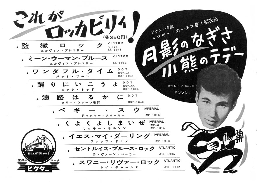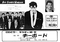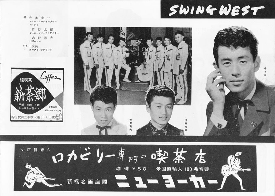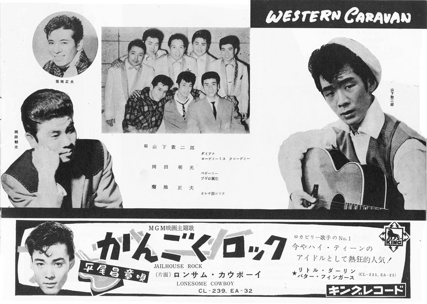 この時点で山下敬二郎は、岡田朝光、菊池正夫(のちの城卓矢)とともにウエスタン・キャラバンのボーカル・メンバーで、ロカビリー・ブームの頂点に立っておりました。