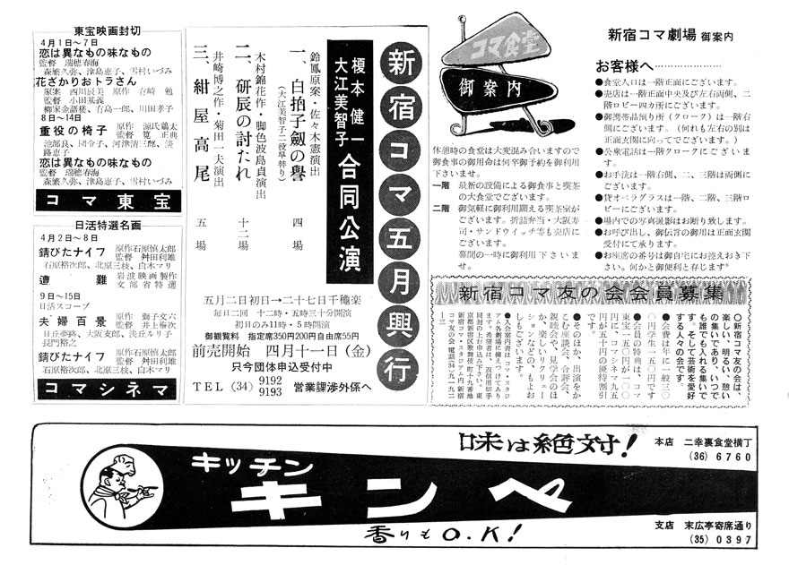 (下)株式会社新宿コマ・スタジアム 1958(昭和33)年4月1日発行のプログラム