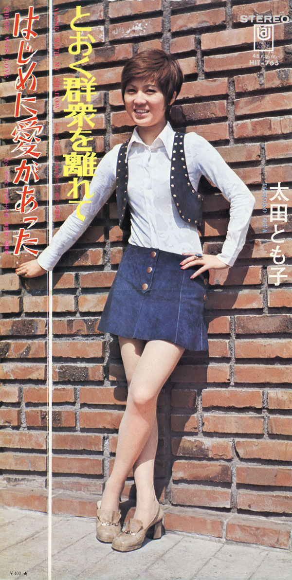 (左)シングル『はじめに愛があった』c/w『とおく群衆を離れて』太田とも子 キング 1970年
