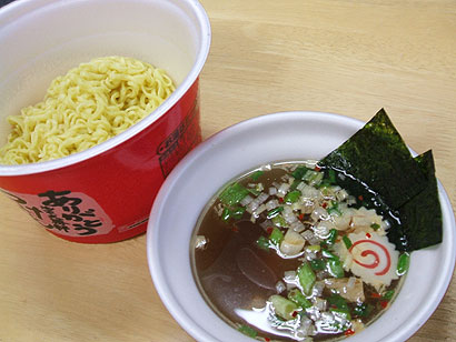 「つけめん」というくらいで、麺のカップとは別に、スープ用のカップ(お椀)がついている。