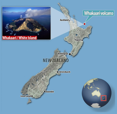 噴火したホワイト島は、ニュージーランド北島の景勝地プレンティー湾の沖合約50キロにある火山島で、観光地。ヘルメットやガスマスクを着用して噴火口を歩くツアーが人気で、毎年およそ1万人が訪れる。