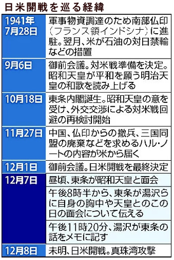 <東条首相、開戦前夜「勝った」…対面の高官メモ 読売新聞(YOMIURI ONLINE) より一部引用>
