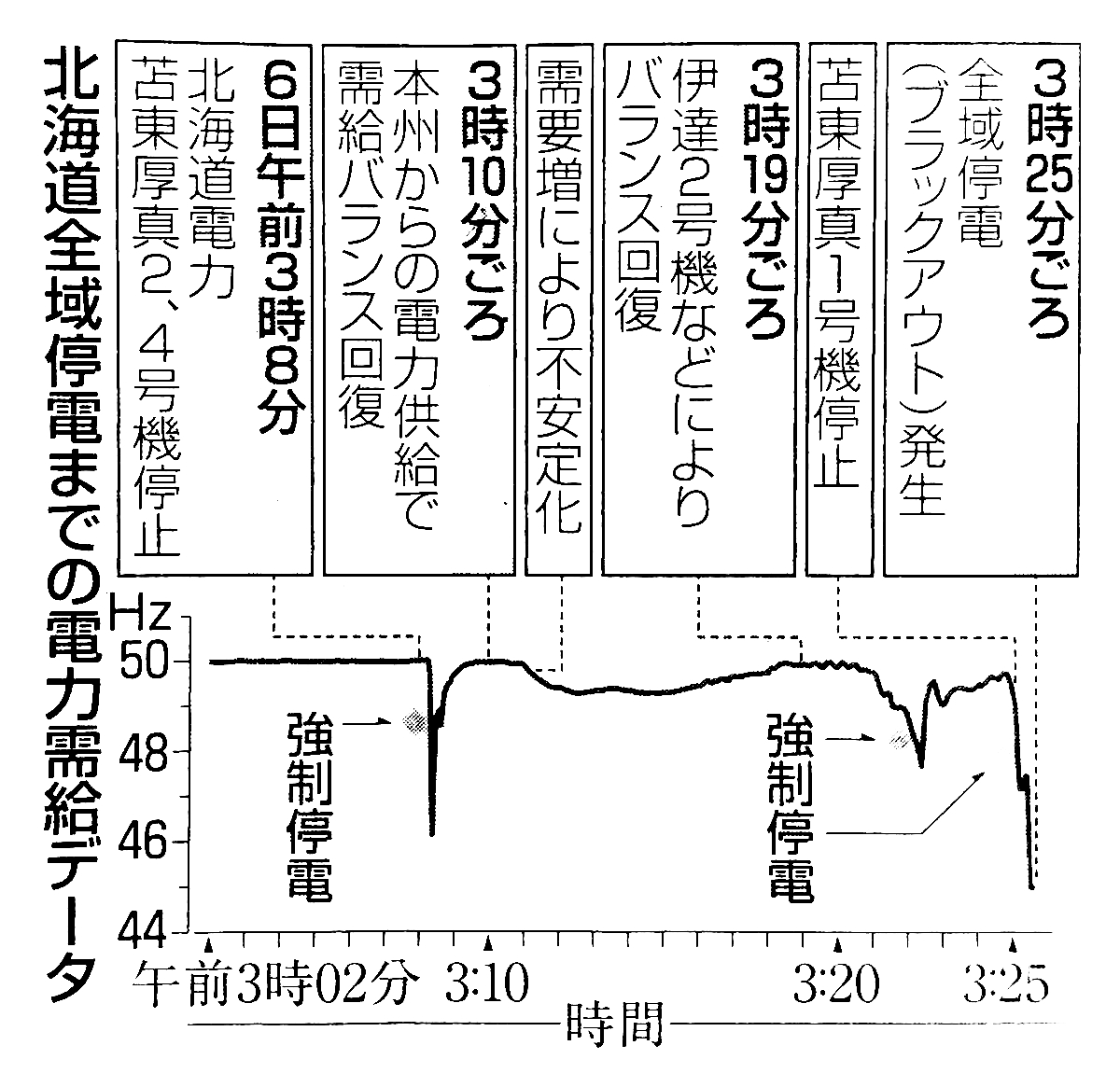 紙面【総合】北海道地震で、道内全域が停電になるまでの18分間の北海道電力の初動の概要が判明した。主力発電所が緊急停止した後、一部地域を強制的に停電する仕組みが3度作動し、別の発電所が出力を増やすなど緊急対応システムが自動的に作動していた。ほか 詳しくは本日(9月20日付)東京新聞朝刊にて pic.twitter.com/ys3aTnfTL9