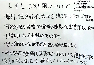 「各階のゴミステーションに設置した簡易トイレを使うよう通達が出た」
