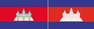 カンボジア国旗(左側)と誤ったカンボジア国旗。<釜山(プサン)アセアン首脳会議記念行事でたらめカンボジア国旗 – 朝鮮ドットコム より一部引用>